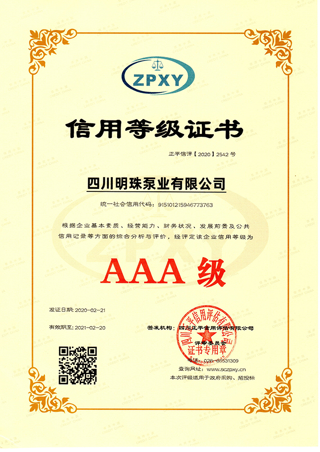 AAA级信用等级证书