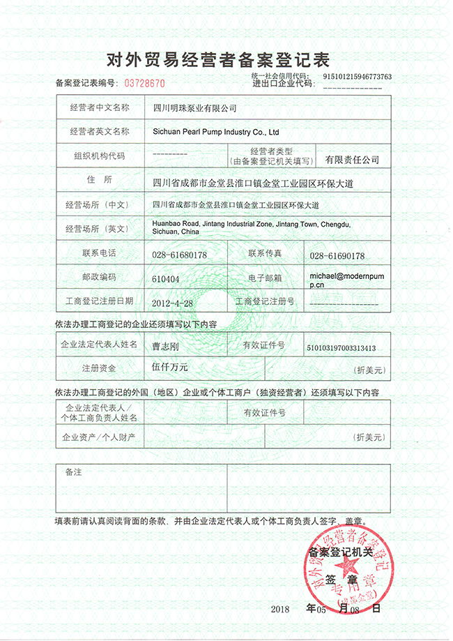 对外贸易经营者备案登记表