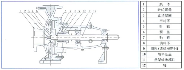 IS、IR型泵是卧式单级单吸清水离心泵,用于工农业及城市、排水、消防供水等。 供吸送清水及物理化学性质类似水不含固体颗粒的液体。