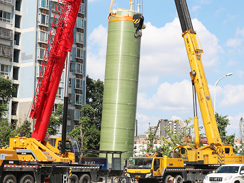 我司直径7.5米大型一体化预制泵站应用成都2024园艺博览会安装现场!