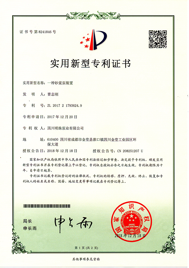《畜牧厂化粪池粪便输出装置》实用新型专利证书