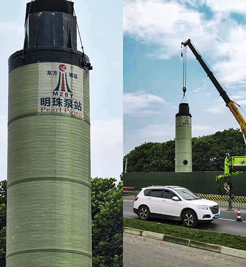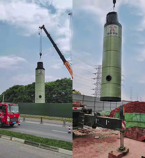 我司玻璃钢一体化预制泵站雨污水收集提升成都市政工程吊装安装施工现场!