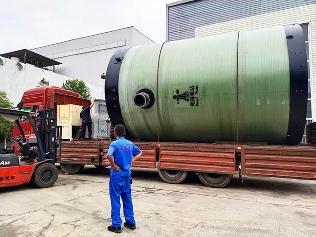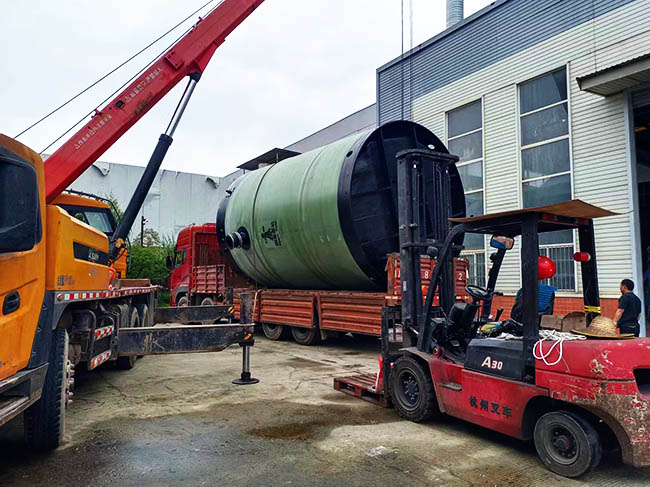 我司玻璃钢一体化泵站装车发货园区树德中学建设项目!