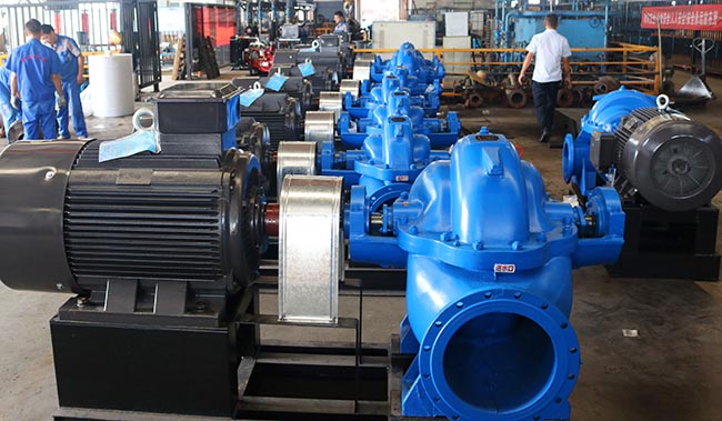 我司批量大流量单级双吸离心泵生产一线蓄势待发出口加沙地区!